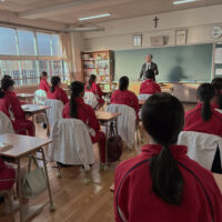 この春卒業された4名の先輩が来校され、情報ビジネス科3年1組の生徒に話をしてくれました。これからの進路に向けた具体的なアドバイスや、社会に出てから大切なことを聞くことができました。