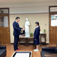本日、国税庁が主催する「税に関する高校生の作文」において、情報ビジネス科3年1組、村上百華さんが「熊本小売酒販売組合理事長賞」を受賞しました。 熊本西税務副署長の内布様と税務広報広聴官の宮本様が来校され、賞状と記念品を授 …