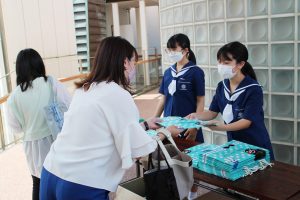 7月24日(日)に中学校体験入学がありました。多くの児童、保護者の皆さんに来校して頂き,お礼申し上げます。中学生と職員全員で準備をして皆様をお迎えすることが出来て、本当に嬉しく思います。生徒会による歓迎行事や体験授業など様々なプログラムを通して、熊本信愛女学院中学校の雰囲気を感じてもらえたと思います。消毒や換気、マスク着用、グループを分けてプログラムを行うなど新型コロナウイルス感染症対策を行いながら短時間の開催でしたが、中学生徒会と1、2年生を中心に精一杯おもてなしをすることが出来たと思います。来場された小学生、保護者の皆さんにも喜んで頂けたと思います。暑い中、本校体験入学へご足労いただき、誠にありがとうございました。では、体験入学の様子を紹介いたします。