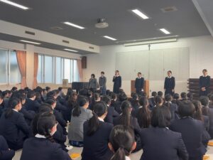 最初に、各クラスの学級委員長に3学期の目標を述べてもらいました。