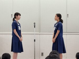事前に各クラスで予選を行い、代表生徒が全校生徒の前で発表しました。