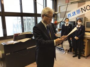 また、春高全国大会に出場する高校バレーボール部の壮行会を行いました。主将が意気込みを述べ、後援会会長・同窓会会長から激励の言葉を頂きました。応援を力に変えて頑張ってほしいと思います。
