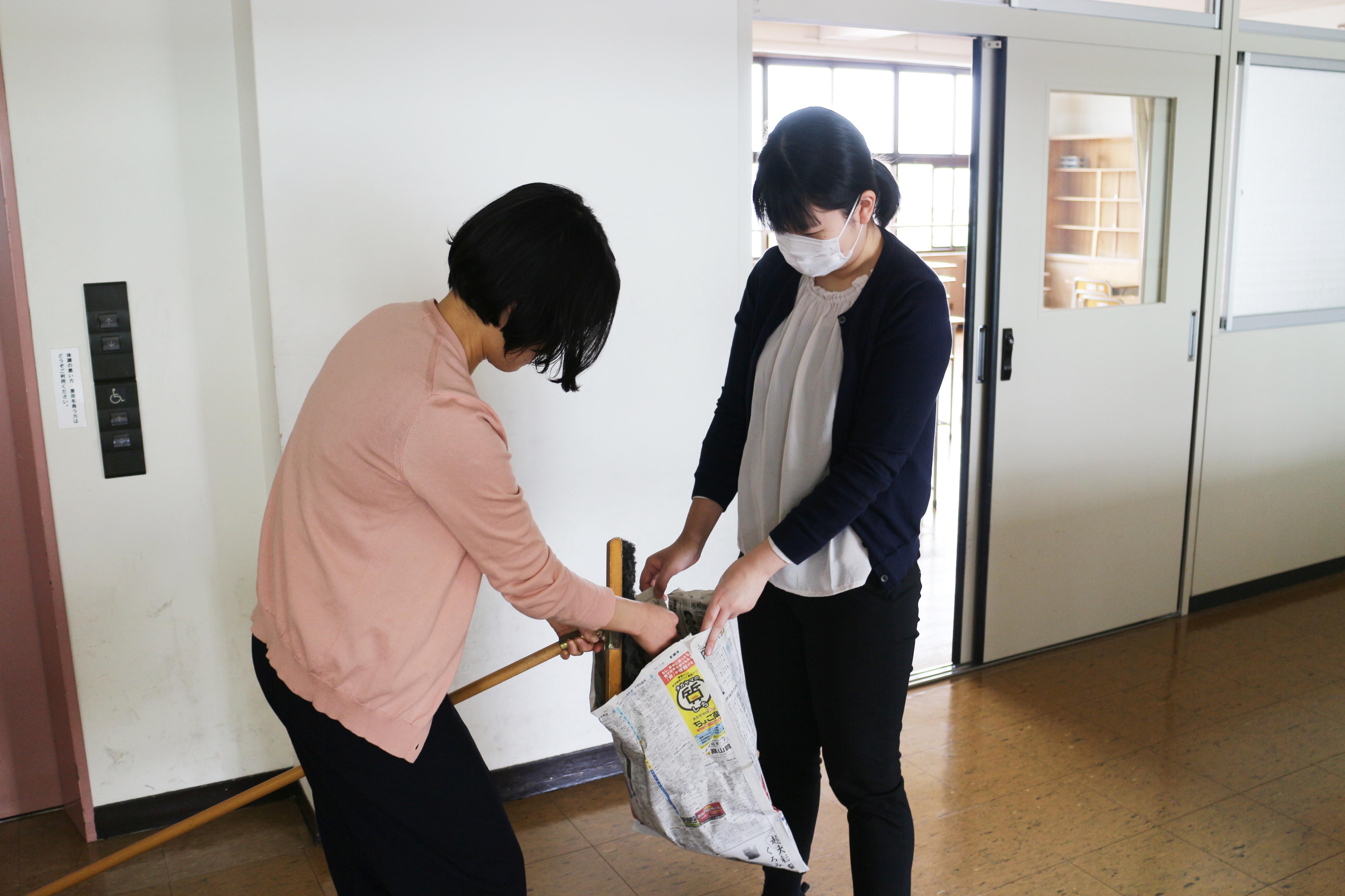 万全の状態で生徒を迎えるため、様々な準備を進めています。その一環として、今朝は全職員で校内の清掃をしました。