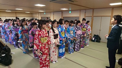 中学2年生の修学旅行(3/3〜3/6)の様子を紹介します。天候にも恵まれ、生徒たちも元気に活動を行っています。食事の様子と着物着付けの様子、着付け後の市内散策の様子を紹介します。随時紹介いたします。