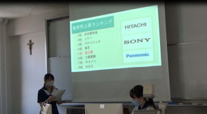 一人一社を担当し、業界研究・同業他社との戦略比較・有価証券報告書を使った経営分析・社会貢献活動など、生徒それぞれの視点で発表を行いました。