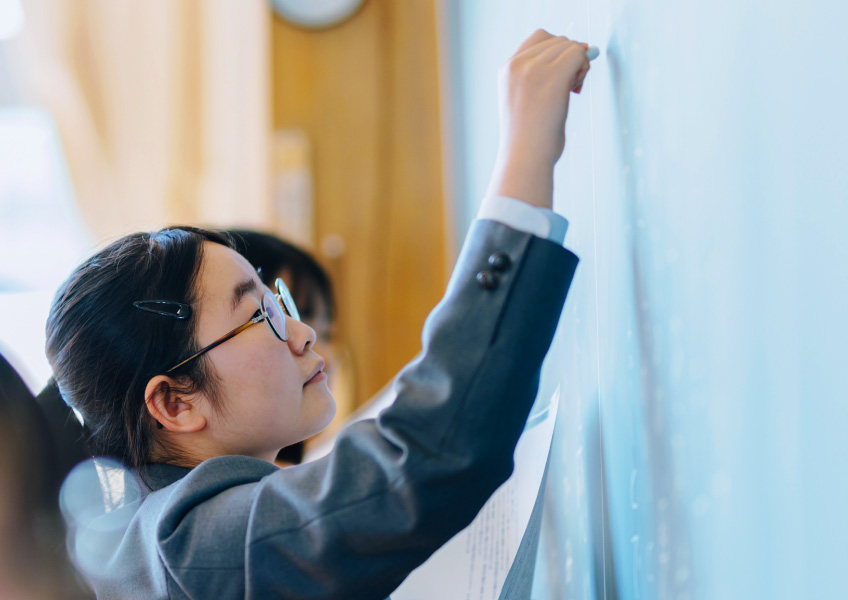 総合的な探求の時間の中で、個別の研究発表だけでなく小グループでの研究活動も盛んに行うことで、課題解決能力を高め、社会の中で自分を輝かせる力を身につけます。