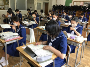 来週は3年生で実施されます。実践の中で英語力を伸ばしていきましょう!