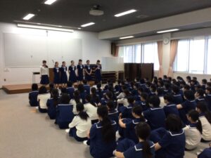 本日、中学のコース朝礼で、各部活の賞状伝達のあと、中体連熊本市大会に向けて壮行会が行われました。
