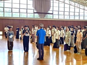 退所式のようすです、代表生徒がお礼を述べて、職員の方にもごあいさついただきました。