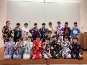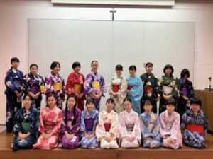 信愛中では、中学1年の技術・家庭で「浴衣を着てみよう」の授業を行います。今年も、浴衣や帯の持参をご家庭にも協力してもらい、楽しく浴衣の着付けを体験することができました。