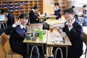 昨日、入学式を終えた新入生は、本日より早速、昼食がスタートしています。生徒たちは、お弁当を嬉しそうに開けていました。新しいお友達と一緒の初めての昼食時間は、とても楽しい雰囲気でした。 明日から新入生指導が始まります。やる気いっぱいの新入生を全力で応援したいと思います。