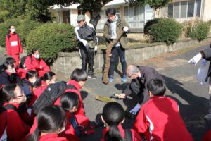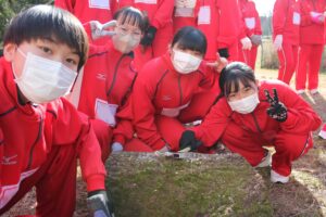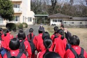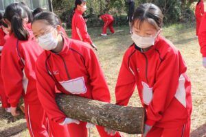 2/28(水)に合志グラウンドにおいて、中学1年生がしいたけのコマ打ち体験を行いました。この体験では、木の幹にドリルで穴をあけ、しいたけの菌を打ちこむ作業を行います。2年後には収穫できる予定です。楽しみですね。生徒たちは皆、班で協力しながら楽しい時間を過ごすことができました。それでは、体験の様子をご紹介します。