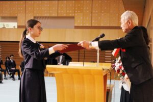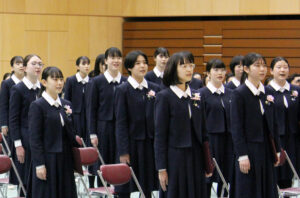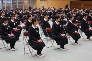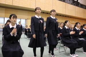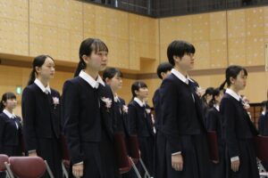 卒業式の歌や聖歌もアリーナに響き渡り、卒業式の厳かな雰囲気に花を添えていました。感極まって涙を浮かべる生徒もおり感動的な卒業式でした。では、卒業式の様子を紹介いたします。