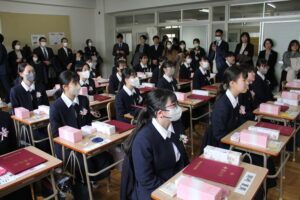 3月8日(土)に卒業証書授与式が行われました。中学校で学んだ事を活かして新天地で大きく花開いてくれる事を職員一同祈っています。