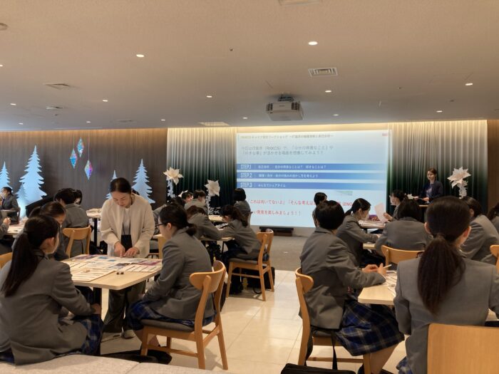 学校では、自分のやってみたい職業にフォーカスしましたが、今回、「興味のない職業をあえて選んでみる」という機会をもつことで、生徒たちは、自分には合わない、適性がない、無理だと思っている分野でも、自分の好き・得意を活かせることや自分の可能性の広さを感じることができたのではないかと思います。生徒の中からは、「私ここで働きたい!」「こういうところで働くなら勉強を頑張って大学に行かないと!」といった意欲に満ちた声が聞かれました。 大変お忙しい時期に、学校での学習をふまえた信愛中の生徒のためだけのワークショップを企画してくださったRKKCSの皆様、本当にありがとうございました。