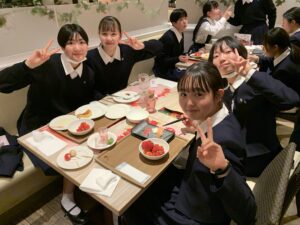 パークフロントホテルでは「いちごフェア」が開かれていて、生徒たちはすごく嬉しそうです。