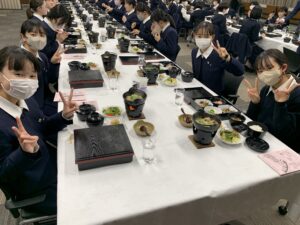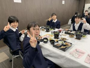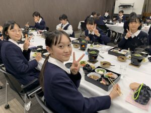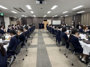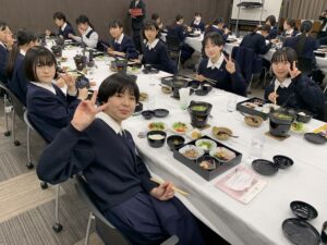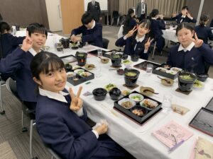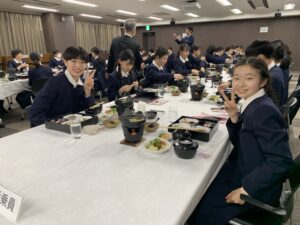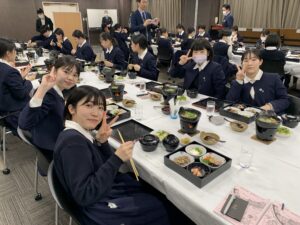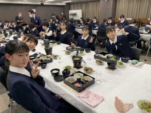 次は京都のホテルでの食事風景です、日々の恵みに感謝して、食前のお祈りは欠かしません。