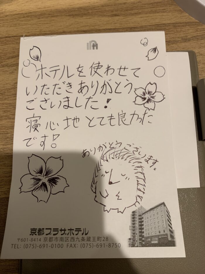 ホテルの方にしっかりお礼の気持ちを伝えて退所しました。