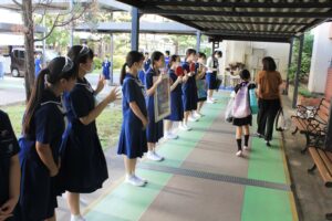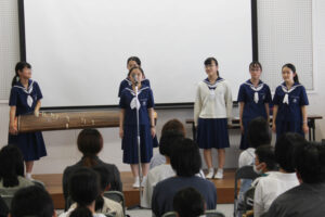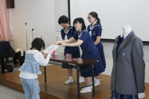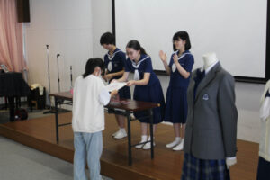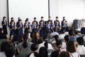 中学1年生のトーンチャイムにはじまり、英語発表、体験授業、信愛カフェ、生徒会によるお楽しみ抽選会など内容盛りだくさんでした。中学生徒会を中心に生徒全員で精一杯おもてなしをすることが出来たと思います。ご来場いただけた皆様に喜んでもらえたら嬉しく思います。
