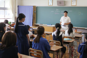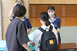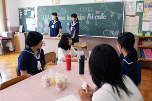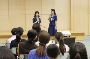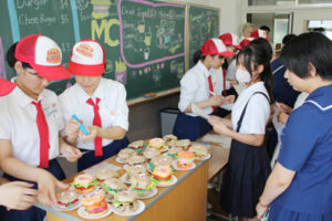 7月19日(土)に中学校体験入学がありました。多くの児童、保護者の皆さんに来校して頂き,お礼申し上げます。中学生と職員で準備をして皆様をお迎えすることが出来て本当に嬉しく思います。熊本信愛女学院中学校の雰囲気を感じてもらえたと思います。歓迎行事の中で、生徒会によるレクリエーション、部活動紹介など様々なイベントを行いました。また、英会話体験授業では、外国人講師による講義の後、信愛生によるハンバーガーショップで英会話を用いた注文体験を行いました。来場された小学生、保護者の皆さんにも喜んで頂けたと思います。4月に皆様とお会いできるのを楽しみにしています。