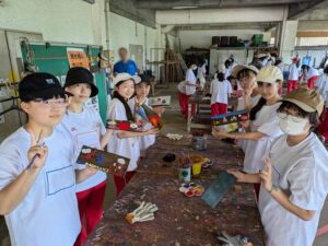 焼き板制作を行いました。学年の壁を越えて協力し合って、個性豊かな作品を仕上げました。