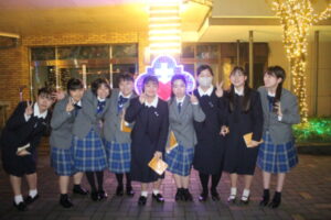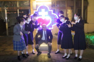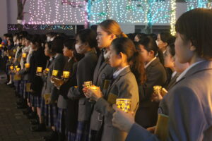 本日、クリスマスイルミネーション点灯式を行いました。待降節を迎え、今年も校舎にイルミネーションでライトアップしました。