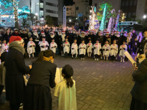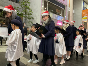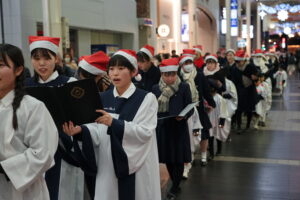 その後、聖歌を歌いながら上通、並木坂を歩くキャロリングを行いました。