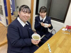 後援会の方々からは今年も豚汁を準備していただき、心も身体も温まりました。また、鶴屋からはクリスマスプレゼントを頂きました。ありがとうございます!