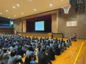 本校では昨日、熊本中央警察署の方を講師に迎え、交通安全講話を実施しました。