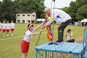 5月13日(月)に信愛合志グラウンドにて 令和6年度 体育祭を開催しました。雨のため1日順延された上に、前日からの雨天でグラウンドのコンディションが心配されましたが無事開催することができて本当に良かったと思います。体育祭開催に向けて、日々練習や準備を重ねてきたことを発揮できたこともあり、大会は、生徒の明るい笑顔と声があふれたものとなりました。各競技を通して、学年の壁を超えた絆を築く場となったように感じます。体育祭で得たものを今後の学校生活に生かしてほしいと思います。