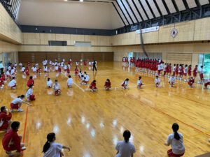 信愛体操やダンスの確認を行い、他の学年と披露し合いました。また、当日の注意事項について連絡がありました。