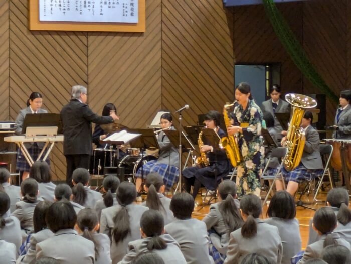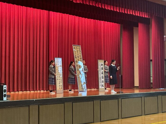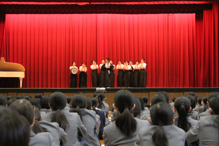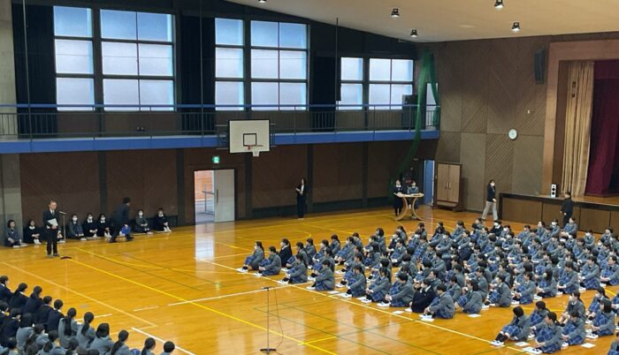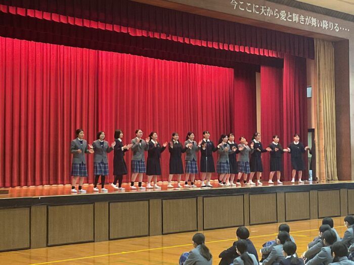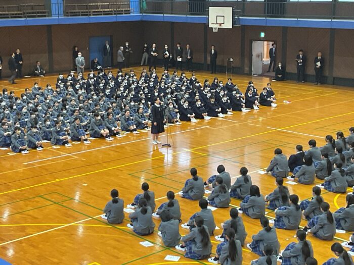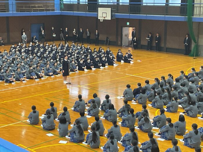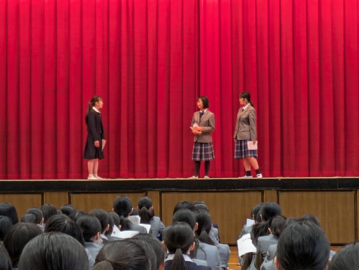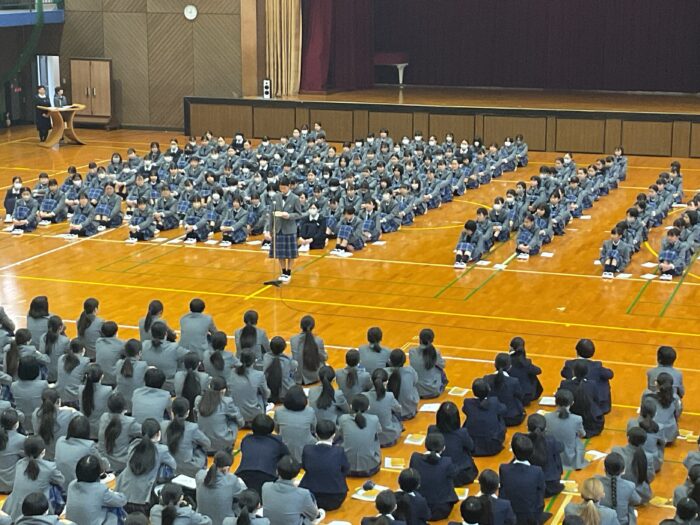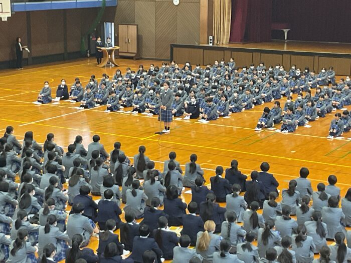 対面式では校長先生、中学・高校それぞれの生徒会長が歓迎の言葉を、中学・高校それぞれの新入生代表が誓いの言葉を述べました。