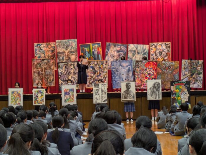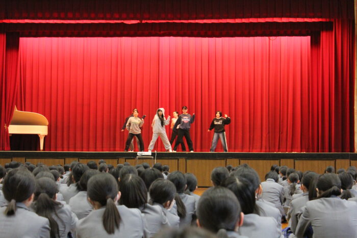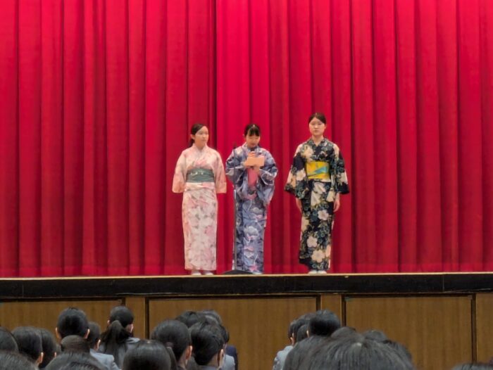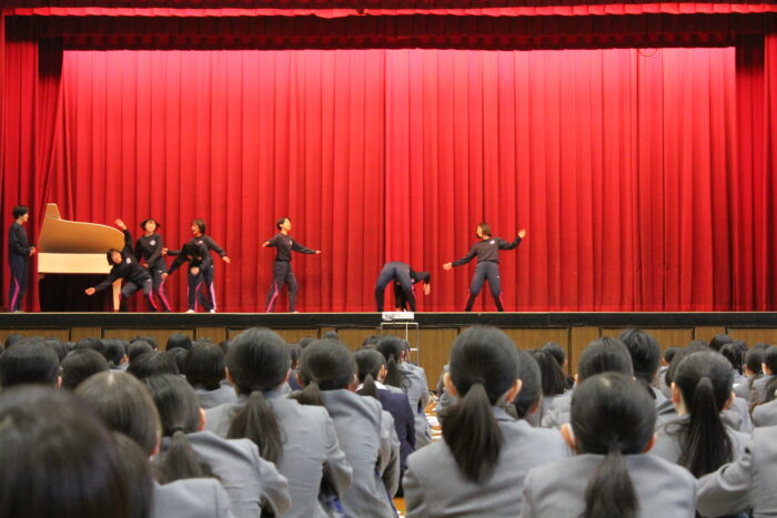 新入生向けの部活動紹介では、各部活・同好会が活動内容や魅力について、活動内容説明や出し物、実際の作品を見せながらと様々な方法で語ってくれました。1年生の笑顔も垣間見え、終始楽しい雰囲気で部活動紹介が行われました。