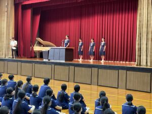 また、全国大会に出場した部活動の代表者から、大会の報告がありました。自分の成長、足りなさなど、様々に実感したようです。今回の経験を次に生かしてほしいです!