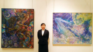 本校、中学・高校を卒業した上田菜央さんの作品(アクリル画)(熊本大学)
