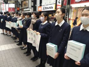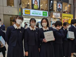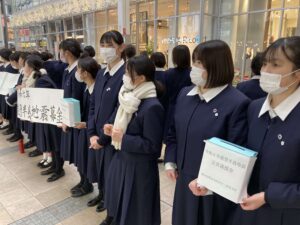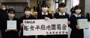 2/3(土)、本校生徒が生徒会・ボランティアセンター主催で、能登半島地震被災者支援のための街頭募金活動を行いました。