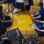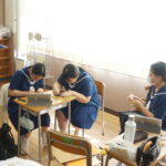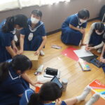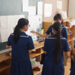 本日は食バザーの教室装飾の様子です。中学2,3年生、高校2年生は食バザーを行います。