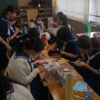 本日はステージ発表とクラス展示の準備の様子です。中学1年生は合唱やトーンチャイム、高校1年生はクラス展示をします。