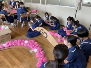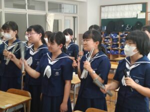 本日はステージ発表とクラス展示の準備の様子です。中学1年生はトーンチャイムの発表、高校1年生はクラス展示をします。