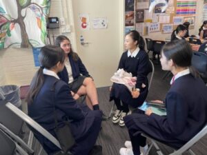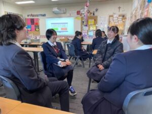 セントコロンバスカレッジでは日本語を学んでいる生徒も多く、信愛生は生の英語に触れる、セントコロンバス生は日本語に触れる機会になります。