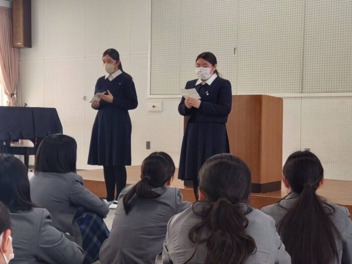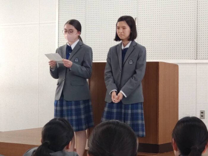 最後に、1・2年生の代表から一年間の振り返りのコメントを英語でしてもらいました。