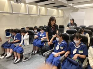マーケットでのショッピングや、飛行機のフライトなど、さまざまな場面でどんな会話やフレーズが必要かを模擬体験しました。