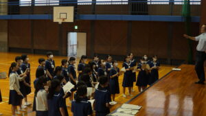 ソプラノ、メゾ、アルトの3パートに分かれての練習で、メロディを覚える段階から少しずつ慣れて声も大きくなっていく様子が見られました。立派なコーラスとなるのが楽しみです。