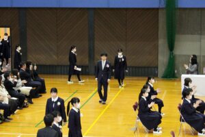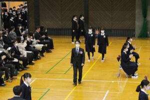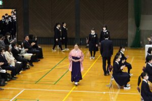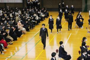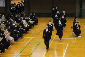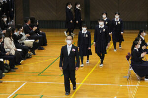 コロナ禍以降、初めての通常開催の形での実施となりました。卒業式の歌や聖歌も体育館に響き渡り、卒業式の厳かな雰囲気に花を添えていました。それでは、卒業式の様子を紹介いたします。