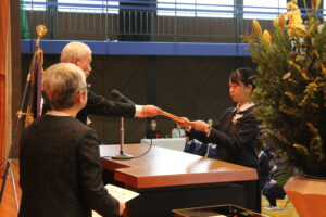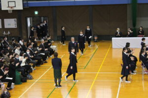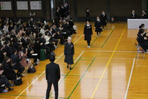 卒業式の歌や聖歌も体育館に響き渡り、卒業式の厳かな雰囲気に花を添えていました。それでは、卒業式の様子を紹介いたします。
