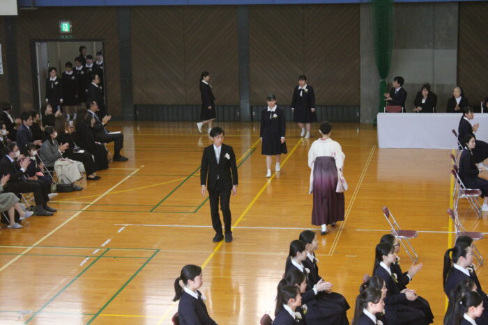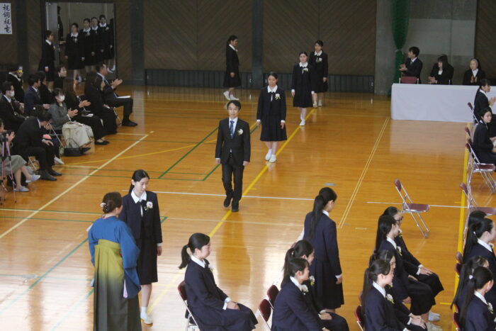 卒業式の歌や聖歌も体育館に響き渡り、卒業式の厳かな雰囲気に花を添えていました。それでは、卒業式の様子を紹介いたします。