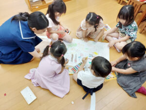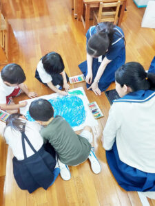 自己紹介のあとは、一緒にお絵描きなどをして楽しく過ごしたようです。