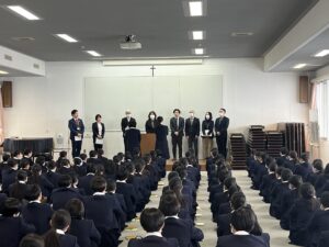 来週から修学旅行に出発する高校1年生が、修学旅行結団式を行いました。