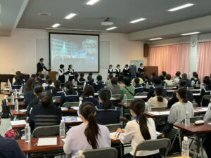 在校生からは学校の紹介や受験生へのアドバイスが送られました。また、各教科の担当から入試問題に関する説明を行いました。