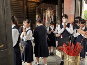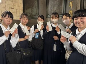 生徒達はおみくじを引いて、将来のために合格祈願を行っていました。